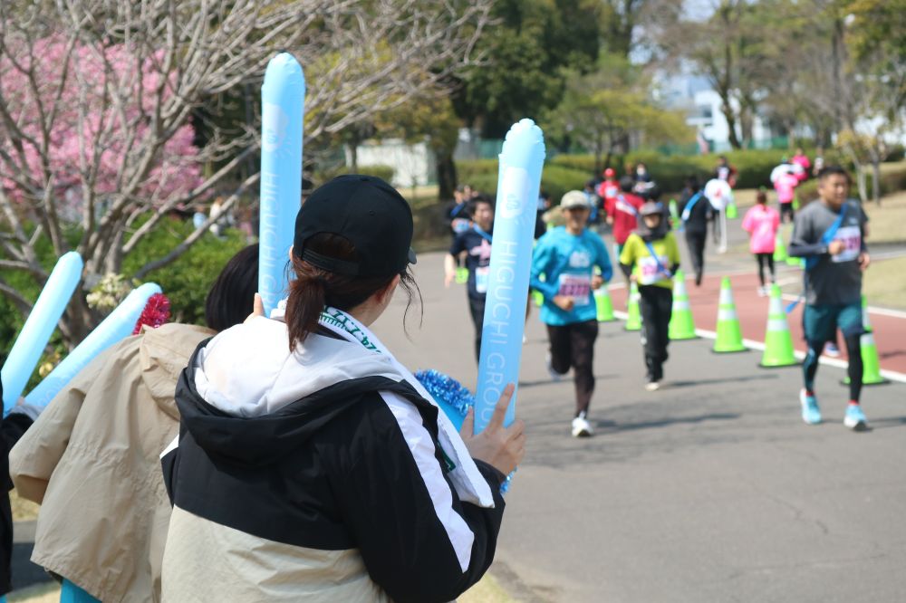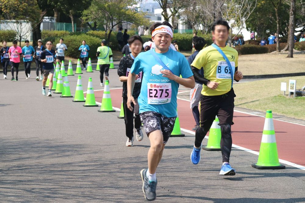 今大会、ひぐちグループからは総勢30名の精鋭ランナーが集結。3チームに分かれ、5時間後のゴールを目指してタスキを繋ぎました。