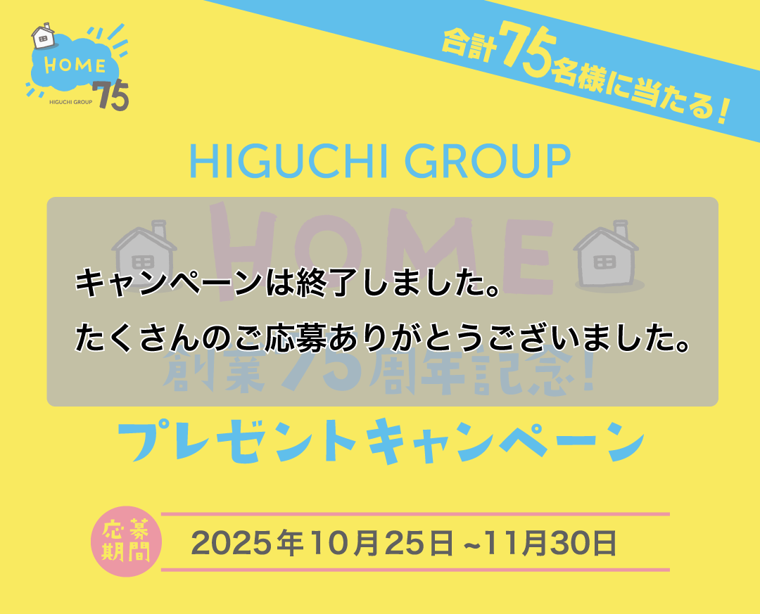 - HOME 創業75周年記念!プレゼントキャンペーンは終了しました。たくさんのご応募ありがとうございました。